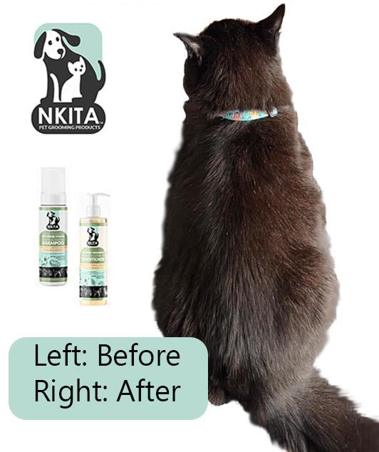 This lightweight foamy cleanser combined with the non-greasy leave-in conditioner cleans, deodorizes, and moisturizes. Watch Nicole, a professional groomer who consistently grooms her own cats with Nkita.